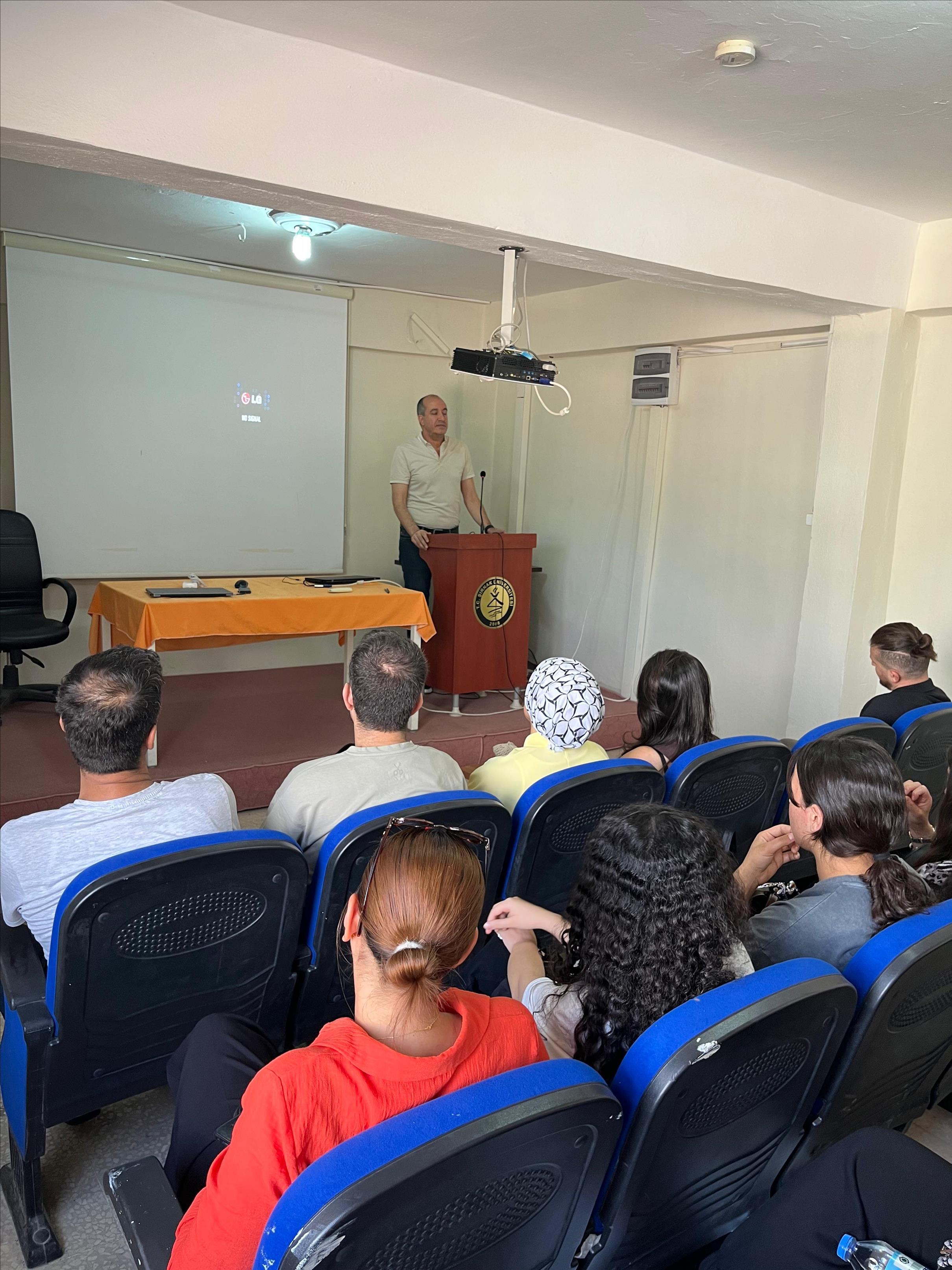 Programın açılış konuşmasını yapan Dr. Öğr. Üyesi Tarkan Ayaz, öğrencileri İdil Meslek Yüksekokulu ailesine katılmalarından dolayı tebrik ederek, başarılı bir eğitim-öğretim yılı geçirmeleri temennisinde bulundu. Öğrencilere yüksekokulun bölümleri, akademik yapısı, fiziki olanakları ve sunulan sosyal imkânlar hakkında bilgiler verdi. Ayrıca, mesleki gelişimin yanında sosyal, kültürel ve kişisel gelişimin de önemine vurgu yaparak, öğrencilerin üniversite yıllarını en verimli şekilde değerlendirmeleri gerektiğini belirtti.